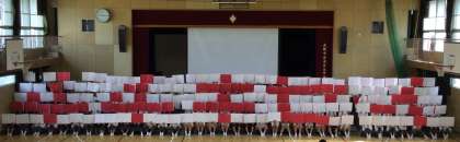 曲に合わせて、一人ひとりが色を変えることで、全校生徒にメッセージを送ります。