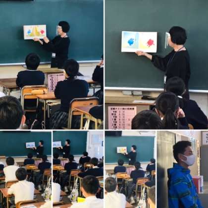 今週は1年生の各クラス、地域の方に来ていただき「絵本」を読んでいただいています。