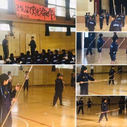 コロナ禍の中にあり、なぎなたを使うことで「場」や「空間」を意識し、周りの人への配慮も考える空間認知能力も鍛えらえるバツグンの教材でした。