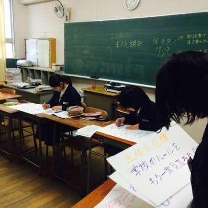 今日3日(火)、多目的室では、月例の生徒議会が開催されました。