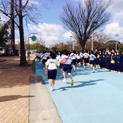 9日(月)、長居公園外周道路で、1.2年生のクラス対抗の駅伝大会が行なわれました。