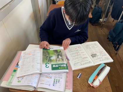 3年生は本日学年末テスト2日目を迎えています。