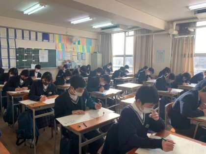 3年生、学年末テスト2日目にのぞみました。