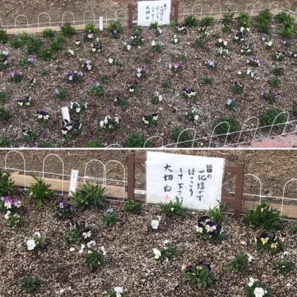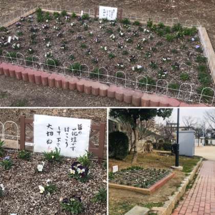 学校の横の公園内に、地域の方が花壇にお花を植えてくれました。