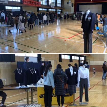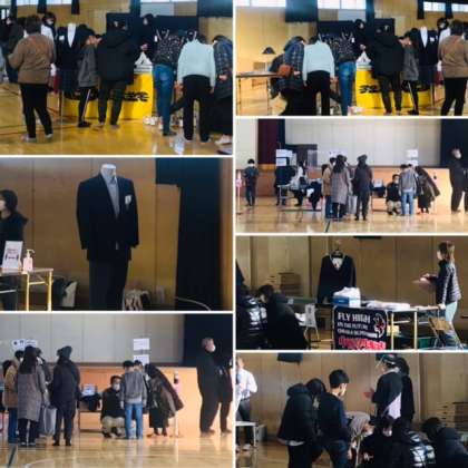 制服やカバンを手にして、4月から一緒に「墨江丘中学校の生徒」として過ごすのを楽しみに待っています。
