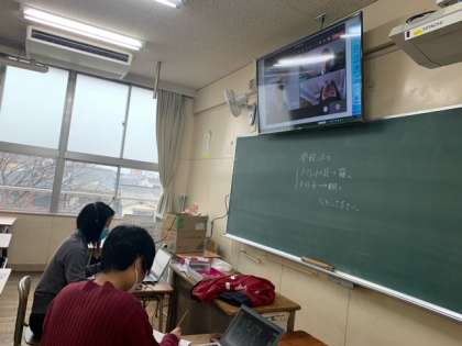 2年生では、12日に行われた卒業式の写真や映像を見ました。