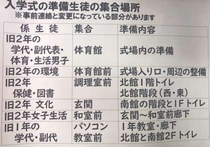 4月6日(火)第44回入学式の準備が来週4月5日(月)にあります。