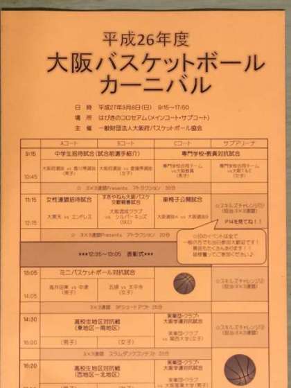 8日(日)、羽曳野コロセアムでは、(一財)大阪府バスケットボール協会主催の「平成26年度大阪バスケットボールカーニバル」が開催されました。