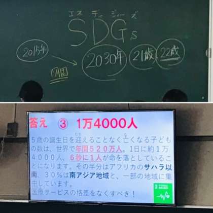 中学校のこの時間に、世界中の問題に対して「自分は何ができるかな?」と考える時間にしてください。