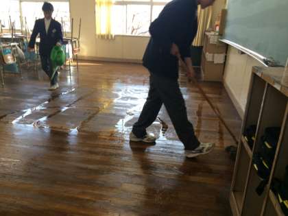 今日は、今年2回目の教室油引きです。