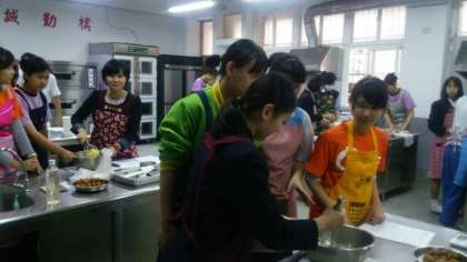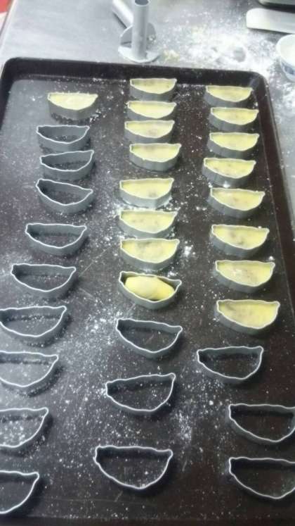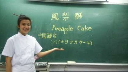 調理実習。二種類の箱に入れて、台湾有名みやげのパイナップルケーキを