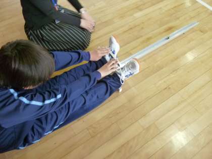 また、「長座体前屈」(写真1)では、体を前屈させて、その柔軟性を測定するものです。