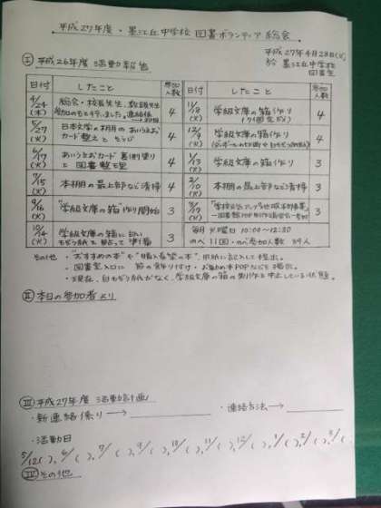 今日、28日(火)午前11時より図書ボランティアの皆さんによる、平成27年度総会が行われました。