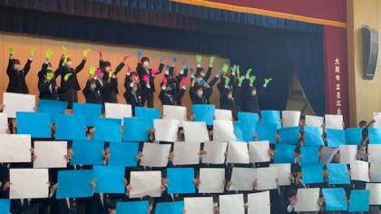 1年生は、手話やダンスを交えて局に合わせてパネルを動かしています。