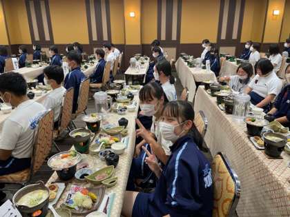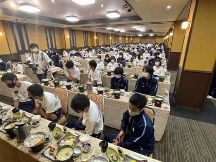 入館式を終え、コロナ禍の中にありみなが同じ方向を向いての夕食です。