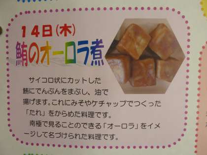 今日のネーミングは油で揚げたマグロに味噌やケチャップをかけて、南極のオーロラをイメージしたものだそうです。
