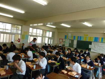 お替わりの人や大盛り希望の人も出て、先生が教室で大盛りにして歩いて周ってくれました。