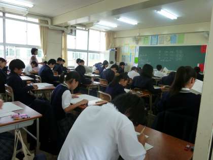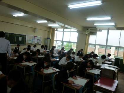 1年生は、中学校に入って初めてのテストで緊張した面持ちで取り組んでいました。