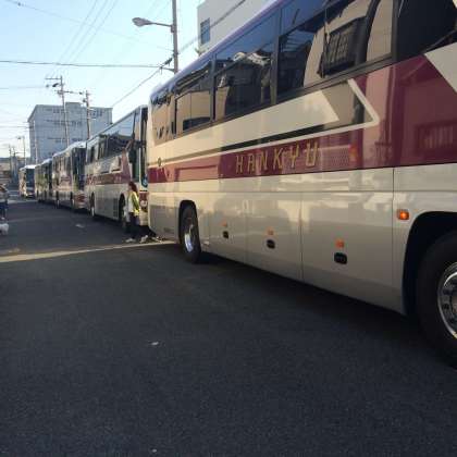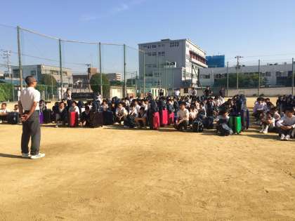 27日、午前7時30分、グランドで、出発式を終えて、183名の3年生を乗せてバスは発車しました。