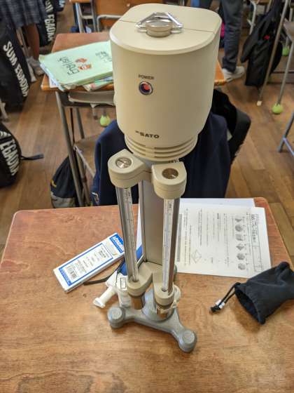 1月27日、学校薬剤師の宮西先生にお越しいただき、空気検査を行いました。