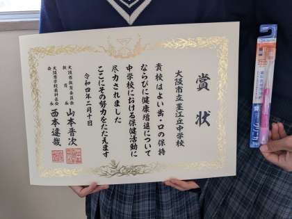 大阪市よい歯の学校表彰