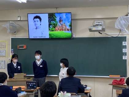 英語のグループ発表の課題は「歴史上の人物・偉人について」というテーマで実施。