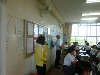 今日は、小中連携の取組みの一環として、清水丘小学校の元担任の先生方が1年生の授業見学に来校されました。