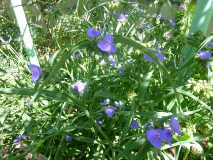この後は、ぶどうが取れる予定です。また、足元には紫露草(ムラサキツユクサ)が咲いています。
