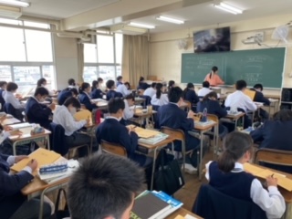 授業の進め方や持ち物の確認をした上で、教科書の内容を学習し始めました。