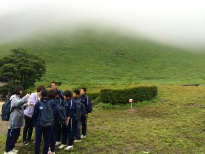 登山は、頂上が視界が悪いので、麓の池を周回する短縮コースで実施しました。