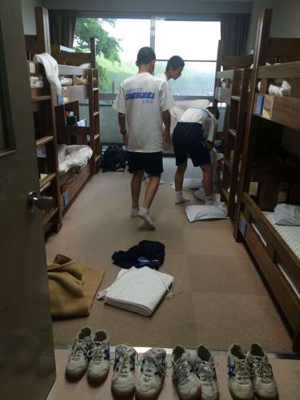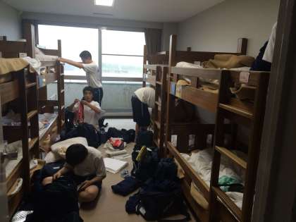 午後の野外活動が、終わったら、いったん入室して、ベッドメイキングを行いました。