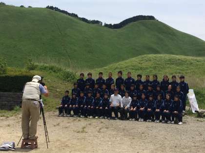 1年生は、早速、きれいな山を背景にクラス写真を撮りました。