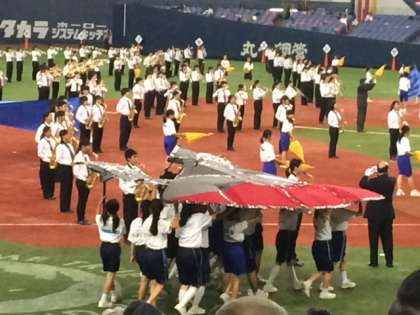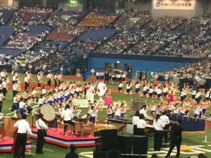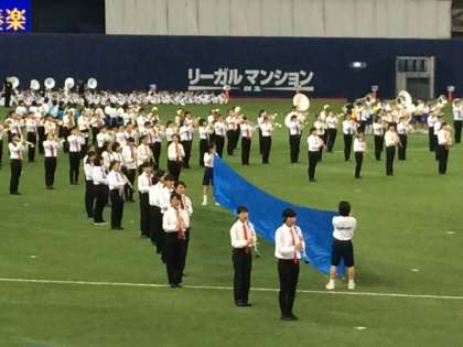大阪市中学校合同バンドは「戦艦ヤマト」など、演奏のほかに、道具を使っての演出や工夫を凝らした発表で場内を沸かせました。