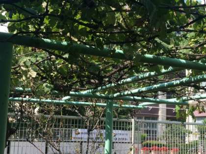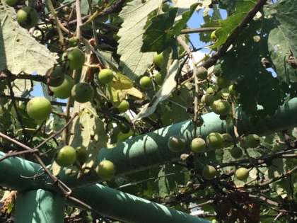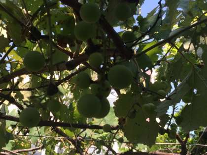学校園の「ぶどう棚」では、ぶどうが実ってきました。