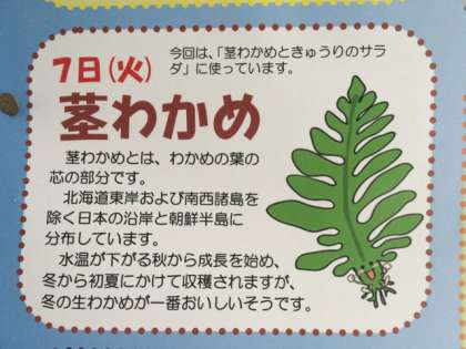 茎わかめは、ちょうど給食だよりにも解説がありましたので紹介します。