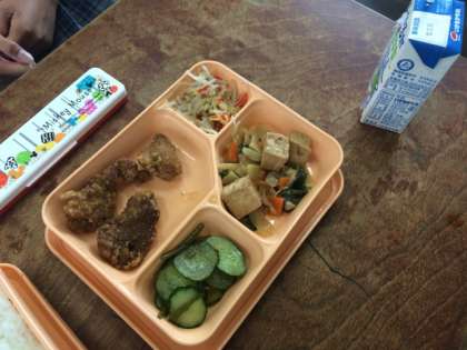 今日の給食では、食材に「茎わかめ」を使ったおかずが出されました。