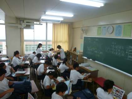 台風接近のため、明日の終業式ができなくなる恐れがでてきましたので、今日16日、終業式に代わる、学年集会や教室で夏休み前の配布物を配りました。