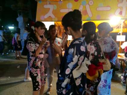 女の子では、浴衣姿で来ている人も多く、「ちょっと暑いけど、気持ち的にも夏祭りらしく雰囲気があって好き」という、感想でした。