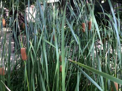 この暑さ中、学校園では、水耕園で、「がまの穂」が大きくなってきました。