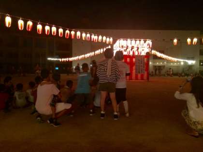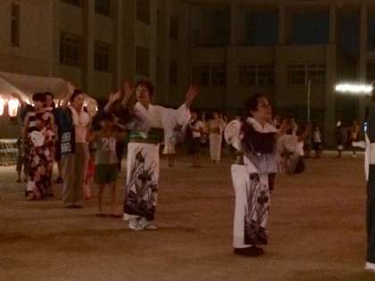 今日、15日(土)と明日16日(日)は、校区、清水丘小学校では、「清水丘町ぐるみ盆踊り大会」が開催されています。