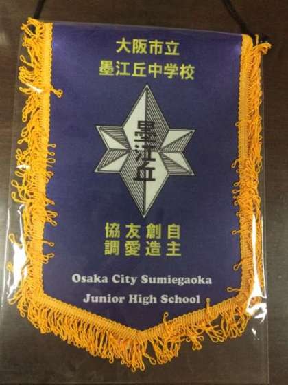本校では、さまざまな交流時に、お渡しできる学校ペナントを作成しています。