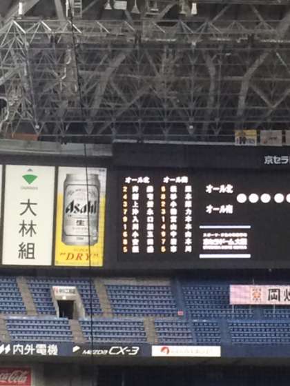 オーロラビジョンにも、5番ピッチャー宮本投手として大きく名前が発表されました。
