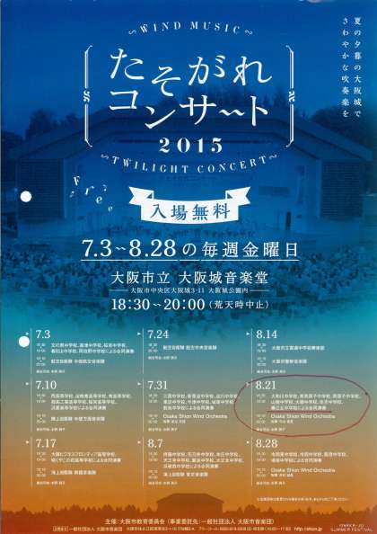 関西大会出場を控えた吹奏楽部では、明日21日(金)大阪市「たそがれコンサート」に出演します。