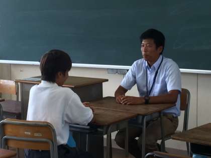 本校では、学期始め1週間、短縮授業にして「教育相談‐生徒との個人面談」を行っています。