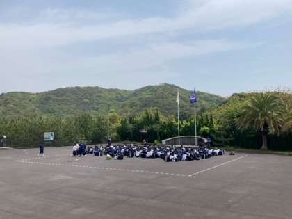 天気も良く、半袖でも熱いぐらいです。健康チェックも無事終わりこの後入館をして、昼食になります。