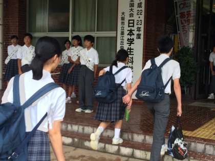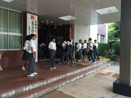 いよいよ、今日6時間目に迫りました生徒会選挙に向けて、最後のお願いが校門で行われました。