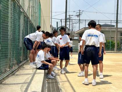 2年保健体育では、ハードル走に取り組んでいます。ハードルを越えながらインターバルを一定のリズムで走り、タイムを短縮したり、競争したりしています。