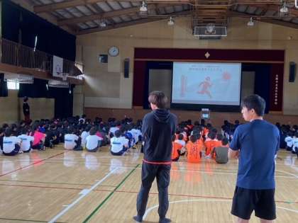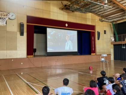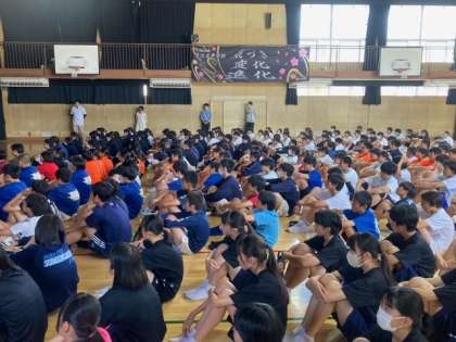 14時より本校教師による、熱中症対策講座が体育館で行われています。