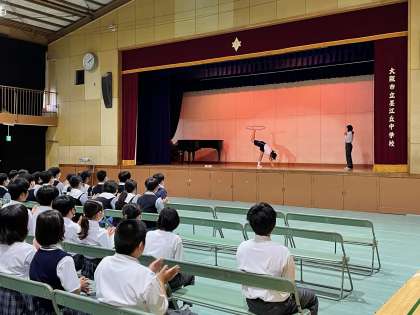 墨江丘中学校からフラフープを使ったパフォーマンスやソーラン節の披露がありました。