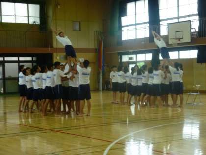 3年生では、新聞ニュースでも話題になりました組体操の練習が始まりました。